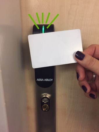 Hold the card still against the reader. A green light now flashes 4 times. The door is now in an unlocked position.