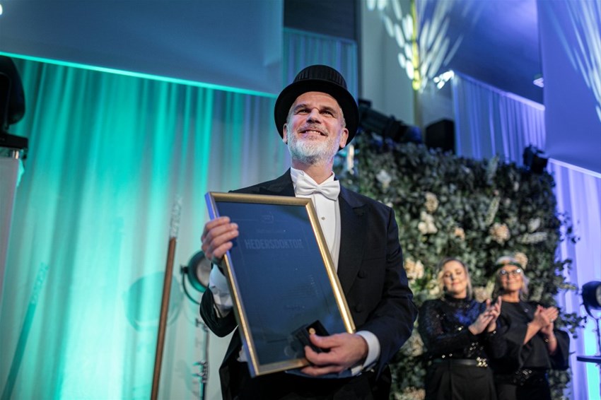 Mathias Lundin utsågs till hedersdoktor vid Högskolan Väst 2024. Mathias är vd för Svetskommissionen och har stark koppling till högskolans ena styrkeområde Produktionsteknik.