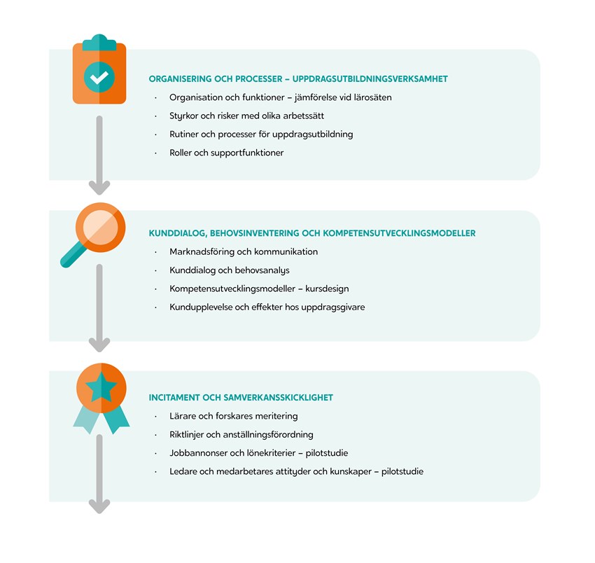 Projektets utvecklingsområden för att planera och genomföra uppdragsutbildning: