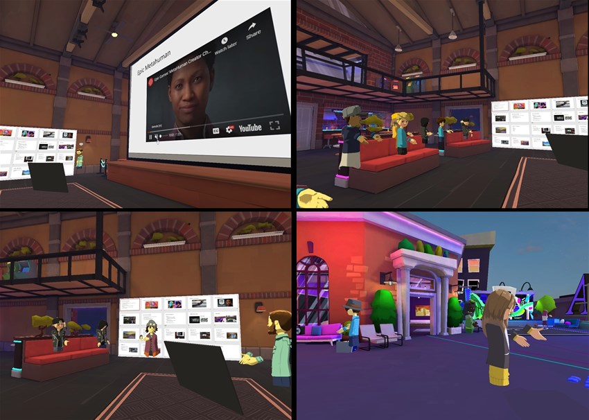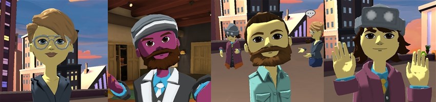 Vi har vid våra träffar främst använt plattformen Altspace. Altspace är en plattform för social VR där deltagare kan ansluta via VR-headset men även via PC. Nedan kan ni se bilder från våra senaste event.